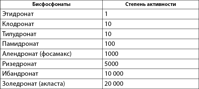 Сравнительная таблица антирезорбтивной активности бисфосфонатов