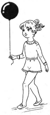 Чтобы отучить ребенка смотреть при ходьбе под ноги, опуская голову и плечи, предложите ему ходить с флажками, шариком (рис. 128), которые ребенок носит над головой и смотрит на них.