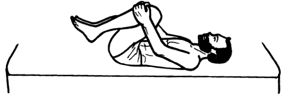 5. При вдохе руки развести в стороны, на выдохе нужно с помощью рук подтянуть колени к животу.