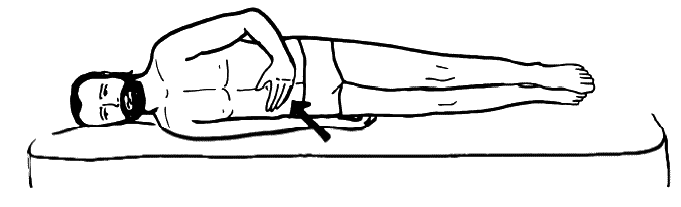 2. Руку положить на нижние ребра. Чтобы создать сопротивление, на вдохе надавить на нижние ребра ладонью.