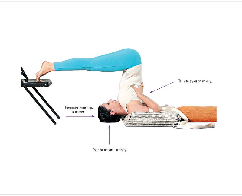 ? оттолкнитесь пальцами ног от опоры и, выпрямляя ноги в коленях, отведите таз немного назад так, чтобы он оказался точно над плечами;