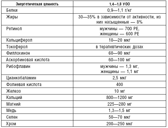 Примечание: УОО — уровень основного обмена; РЕ — ретиноловый эквивалент.