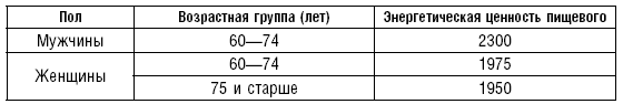 Энергетическая ценность суточного пищевого рациона для лиц старших возрастных групп[1]