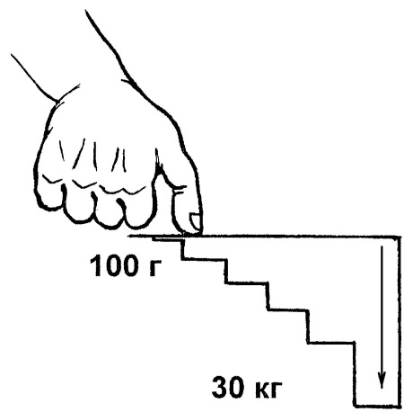 Усилие, прилагаемое при надавливании на отдельные точки, варьируется от 100 г и до 30 кг, например, на стопе (рис. 7).
