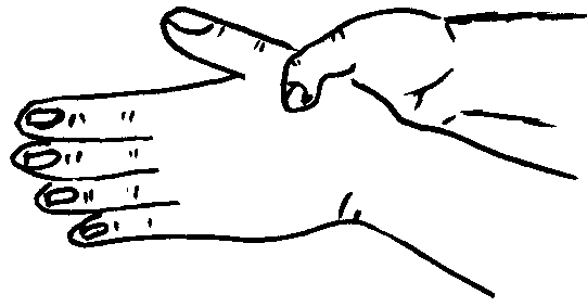 Рис. 14. Техника щипцеобразного воздействия на точки ХЭ-ГУ