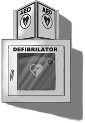 Когда-то дефибриллятор был доступен лишь врачам, но сейчас его часто ставят в местах скопления людей. Поищите на стене ящик с надписью AED. Вам остается лишь открыть его и воспользоваться устройством{126}.