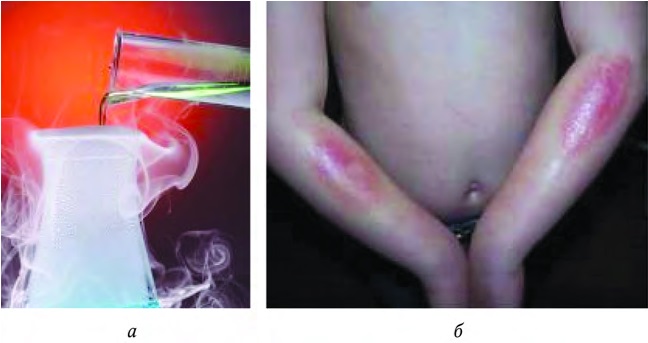 Рис. 14. Химические вещества (а) и их воздействие на кожу (б)