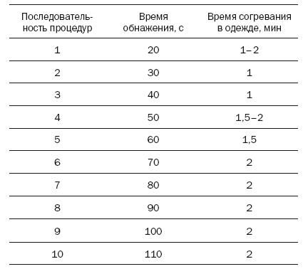 Всегда начинают с 20 с и за 6 дней доводят время обнажения до 120 с. Далее используют всю схему.