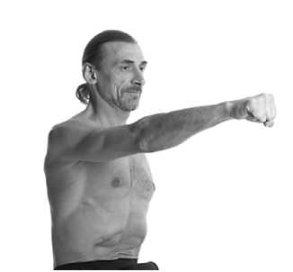 2. Сожмите правую руку в кулак и вытяните ее вперед.