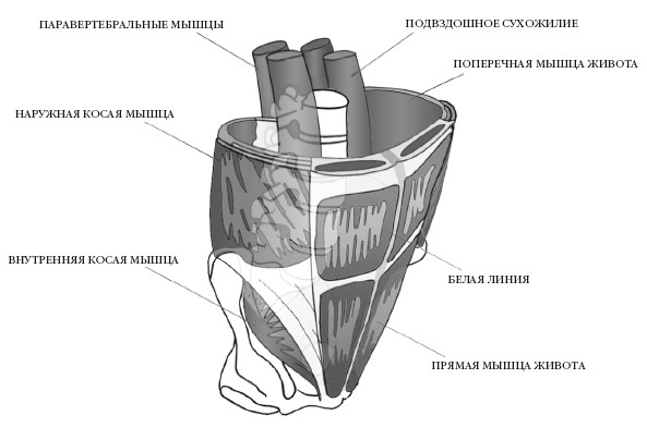 Мышцы живота расположены между грудной клеткой и тазом и ограничивают область брюшной полости. Мышцы живота играют важную роль в движении, стабилизации и поддержании туловища. В эту группу мышц включают прямую (самую поверхностную) мышцу, наружную косую, внутреннюю косую мышцы и поперечную мышцу живота (самая глубокая из этих четырех мышц).