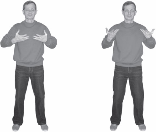 Руки согнуты в локтях, ладони перед грудью, повернуты вверх – к груди.
