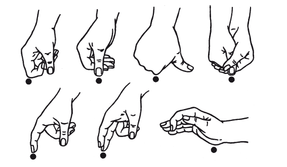 Рис. 1. Положение пальцев при выполнении точечного массажа