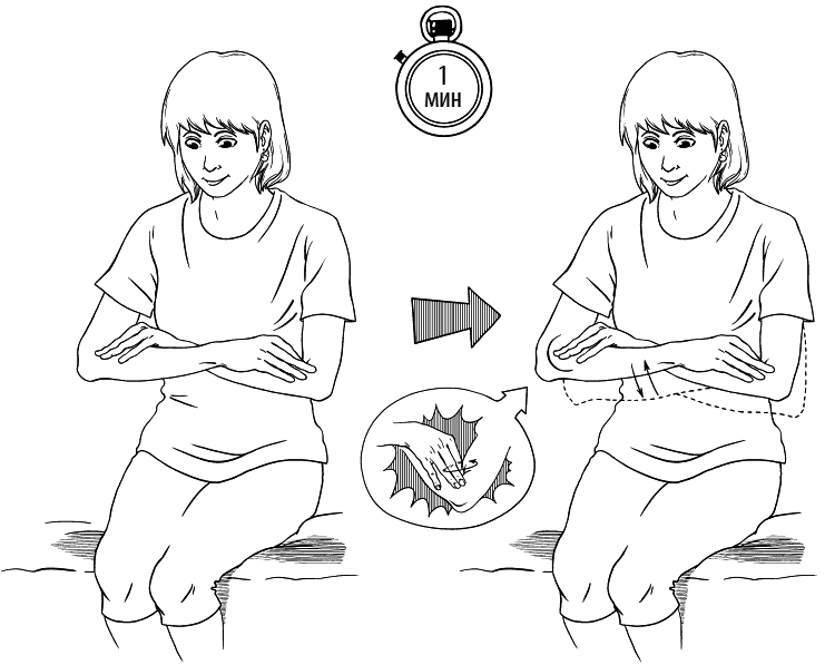 Сначала необходимо скрестить руки, средними и безымянными пальцами нащупать точки, расположенные на окончании складок локтей. Затем нужно массировать эти точки круговыми движениями против часовой стрелки, одновременно чуть приподнимая и опуская руки. Такой массаж следует выполнять в течение минуты, а затем надо сделать перерыв на минуту. Повторите последовательность массажа и отдыха 3–6 раз.