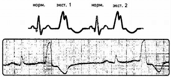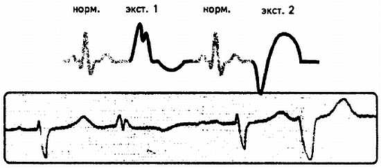 Следовательно, перед желудочковым экстрасистолическим комплексом будет регистрироваться экстрасистолический зубец Р, отличный от нормального зубца Р.