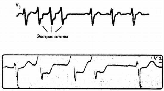 Напротив, если экстрасистолы регистрируются чаще, чем одна экстрасистола на 40 нормальных синусовых комплексов, такую экстрасистолию называют частой.