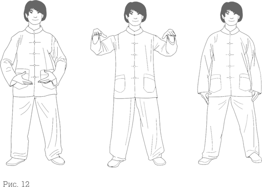 Продолжая дышать, опустите расслабленные руки вдоль корпуса и вернитесь в исходное положение.