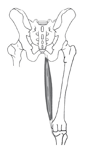 Тонкая мышца, также называемая внутренней прямой мышцей, является наиболее поверхностной мышцей внутренней стороны бедра. Она доходит до большеберцовой кости и прикрепляется между портняжной и полусухожильной мышцей, за что сухожилие этих трех мышц названо «гусиной лапой» (оно по форме напоминает три пальца животного). Сокращение этой мышцы влияет на движения бедра и колена.