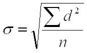 ∑d2 – сумма квадратов разности средней арифметической и каждой варианты (d = |M-V|)