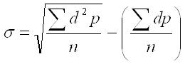 ∑d2p – сумма произведений квадратов разности средней арифметической и каждой варианты на частоту ее встречаемости,