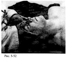 Большими пальцами мягко промассируйте круговыми движениями переносицу пациента около пяти раз (рис. 5-52).