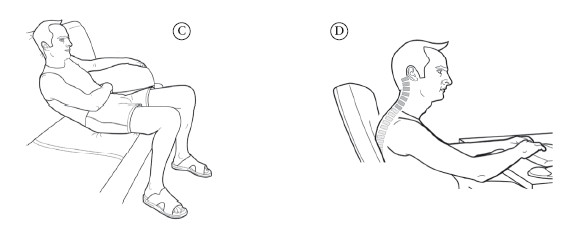 • У лиц, имеющих постуральную привычку перемещать голову вперед (D), особенно у лиц, занятых в определенной профессиональной сфере, диски шейного отдела испытывают постоянное сдавливание, что приводит к прогрессирующему повреждению их структуры и появлению протрузий и грыж.