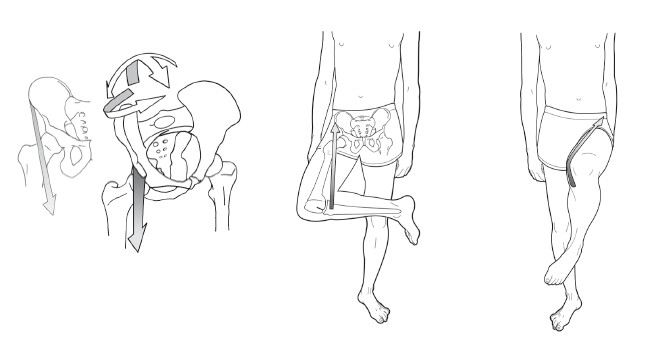 • Комбинация антеверсии, наклона (в сторону сокращающейся мышцы) и поворота таза (в противоположную сторону).