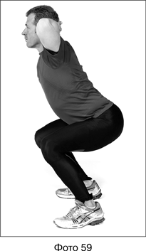2. Держите спину прямо, голову не опускайте. Руки заведите за голову (см. фото 59). Затем вернитесь в положение стоя.
