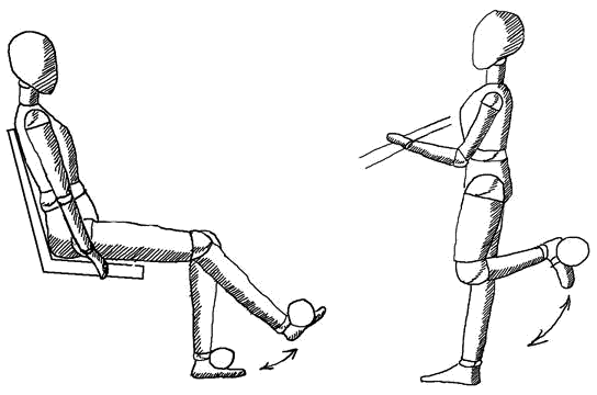 9. ИП: стоя, держась за спинку стула. Голову и спину держать прямо. Согнуть ногу в колене и притянуть голень к бедру. Медленно опустить ногу. Упражнение развивает силу мышц задней поверхности бедра (рис. 6.14).