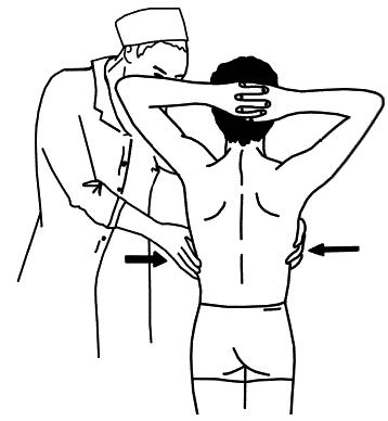 Нижнегрудное дыхание с преодолением сопротивления рук инструктора в области нижних ребер