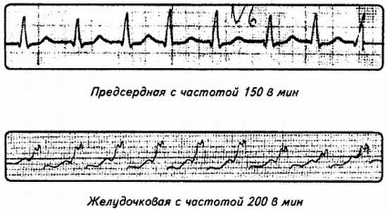 Рис. 83. Пароксизмальные предсердная и желудочковая тахикардии