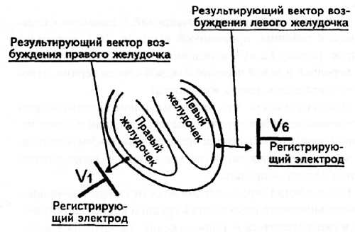 Рис. 25. Регистрация результирующего вектора отведениями V1 и V6
