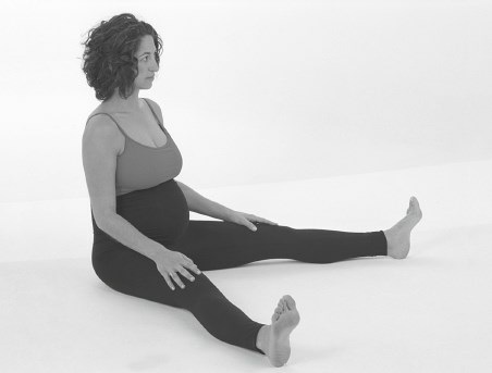 Адаптированный вариант Упавиштха Конасаны. Сядьте на пол, спина прямая, ноги разведены в стороны как можно шире. Спину держите вертикально, вес туловища равномерно распределен на седалищные кости. Возможно, вы будете чувствовать себя более комфортно, если сядете не на голый пол, а на одеяло. Сделайте вдох. Держа спину прямой, наклонитесь вперед, сделайте выдох и положите руки на колени, голени или лодыжки (по возможности как можно дальше). Дыхание спокойное. Оставайтесь в этой позе 10–15 секунд. При вдохе распрямитесь и вернитесь в исходное положение.