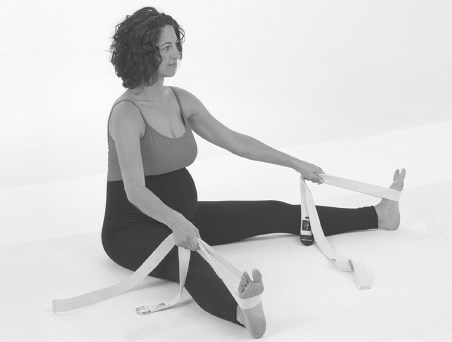Обычный вариант Упавиштха Конасаны. Начало такое же, как и в предыдущем варианте. Возьмитесь за наружные стороны ступней или используйте ремни, чтобы максимально потянуть тело вперед.