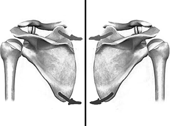 Если угол ключиц пологий (рис. 97), то лопатки смещаются к центру своей нижней частью (стрелочки нижние) (рис. 96).