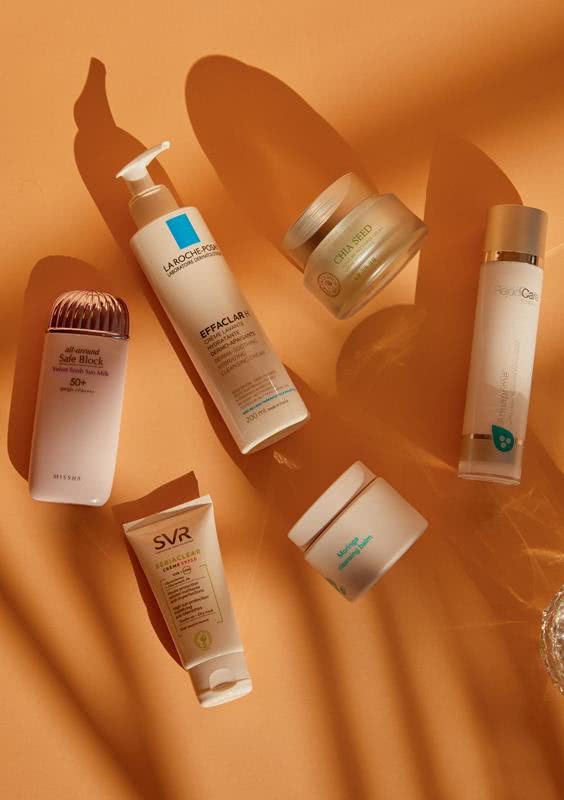 Для очищения лучше выбирать косметику, которая не будет пересушивать сухие участки. Лучше всего здесь подойдут непенящиеся жидкие средства – эмульсии, лосьоны или молочко. Но если вам нравятся пенящиеся, то лучше выбирать те, что предназначены для сухой кожи.