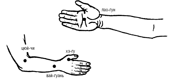 1. ЦЮЙ-ЧИ (GI-11) находится у наружного края локтевой складки, при согнутой в локтевом суставе руке.