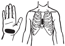 Рис. 15.3. Место упора основанием ладони на грудине при наружном массаже