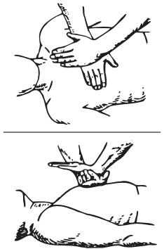 Рис. 15.4. Положение кистей рук при закрытом массаже сердца