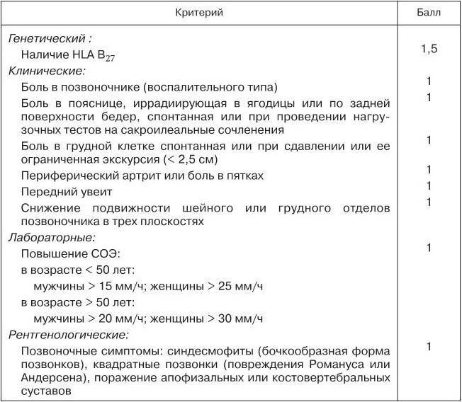 Примечание. Сумма баллов больше 3,5 указывает на наличие раннего анкилозирующего спондилоартрита.