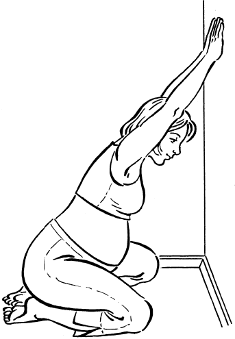 Исходное положение: повернитесь лицом к стене, встаньте на колени, широко их расставив. Таз опустите на пятки.