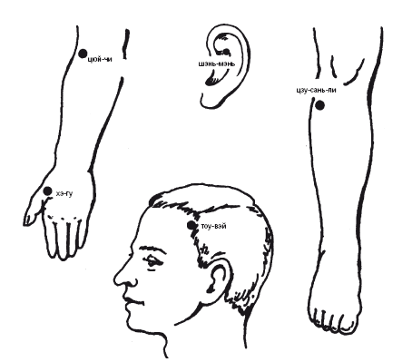 Рис. 34. Точки воздействия при дискомфорте,