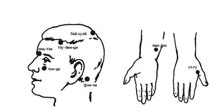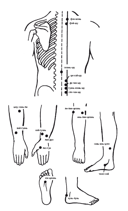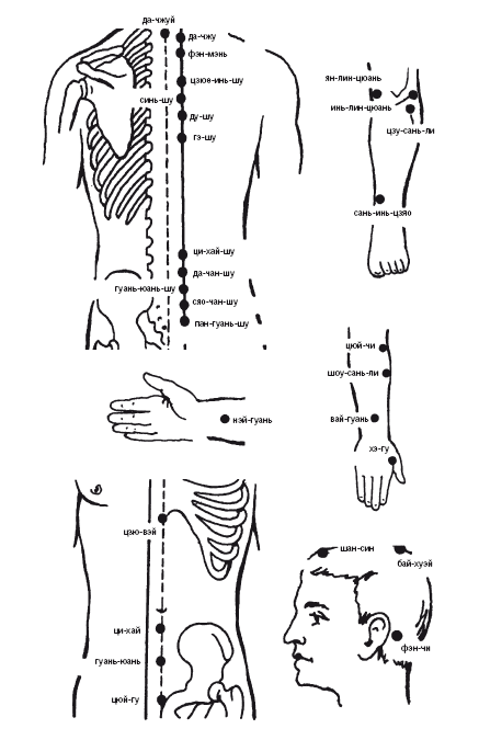 Рис. 32. Точки воздействия при вялости, снижении