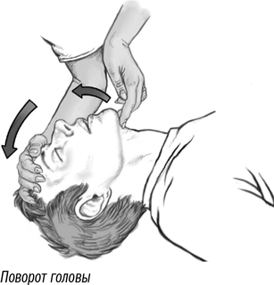 • Поворот головы. Откиньте голову больного назад подбородком вверх – это очистит дыхательные пути. Никогда не выполняйте эту процедуру, если не исключена травма позвоночника.