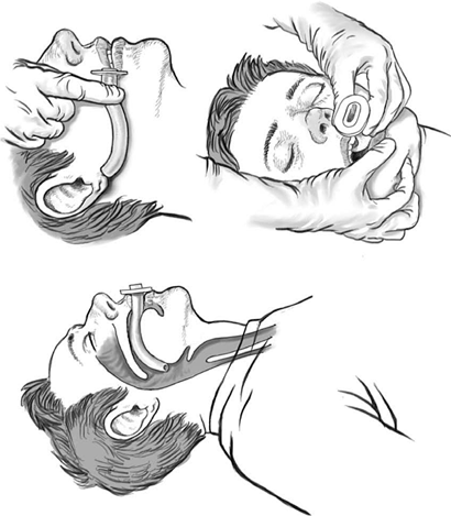 Если нет подозрения на перелом позвоночника, вернуть язык в нормальное положение просто: достаточно перевернуть больного со спины на бок. Однако если не исключена травма позвоночника или если больному нужны определенные процедуры (например, компрессии грудной клетки), то перевернуть его сразу не получится. В этом случае очистить дыхательные пути можно иными способами.