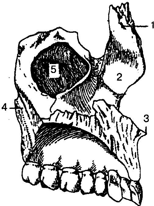 Рис. 30. Левая верхняя челюсть (вид с медиальной стороны):