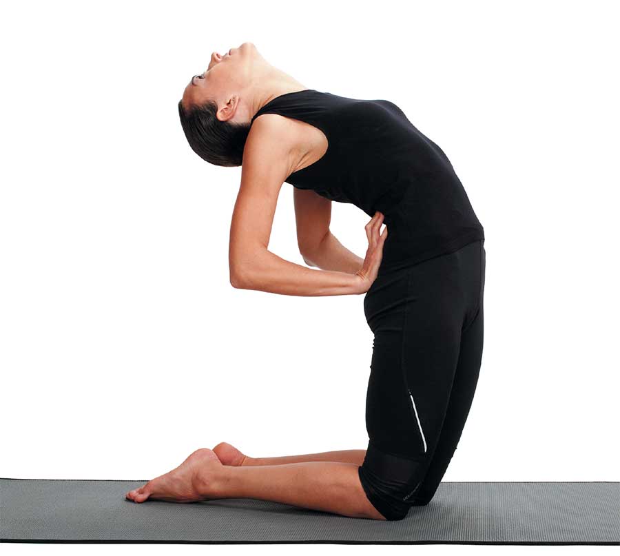 В качестве подготовки к выполнению полного варианта асаны положите ладони на спину у верхнего края таза. Пальцы разверните вниз. В этом положении подайте бедра вперед, максимально вытяните позвоночник вверх и отведите назад плечи и голову. Сделайте в этом положении несколько дыхательных циклов.