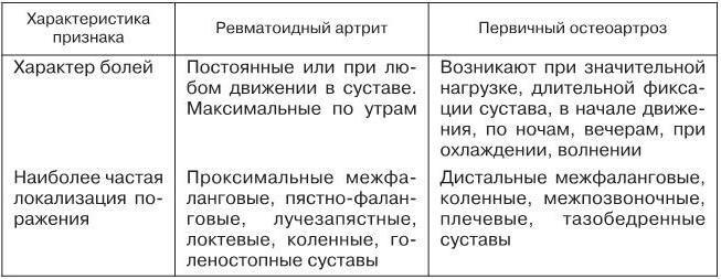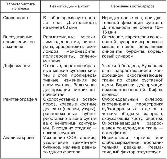 Дифференциальная диагностика ревматоидного артрита и первичного остеоартроза