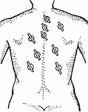 Рис. 34. Наложение медных монет на спину при остеохондрозе
