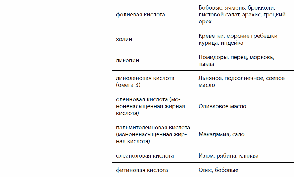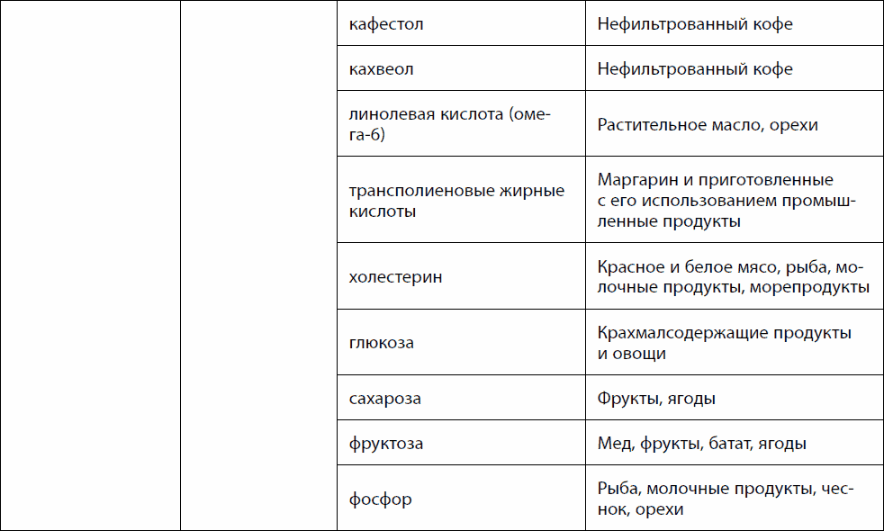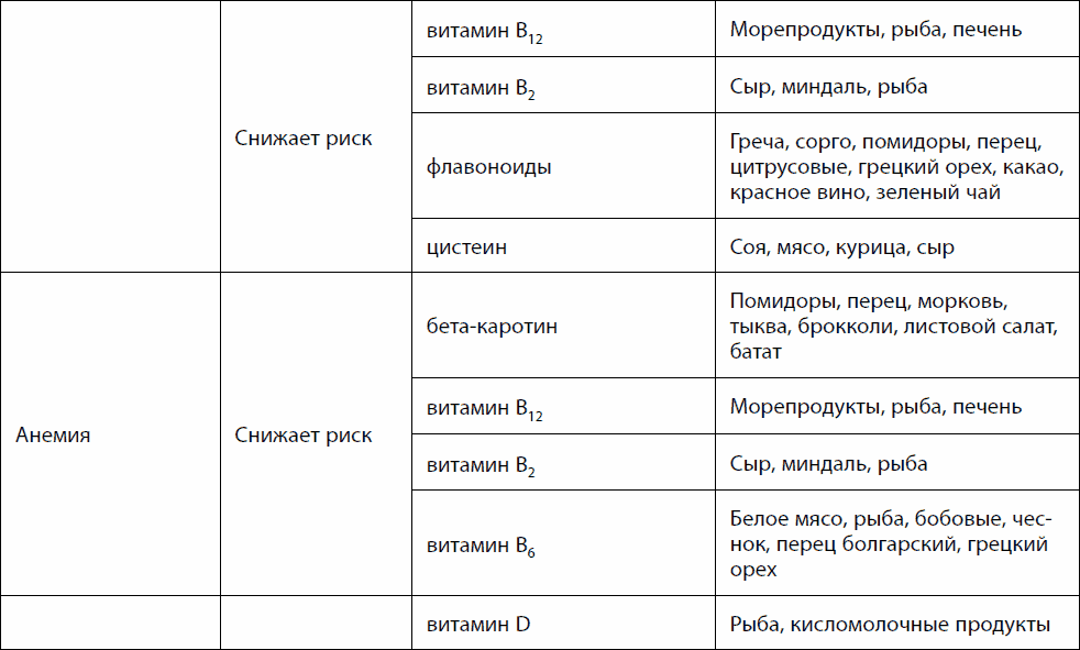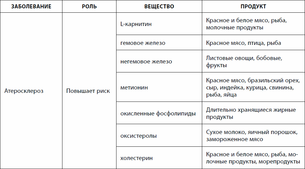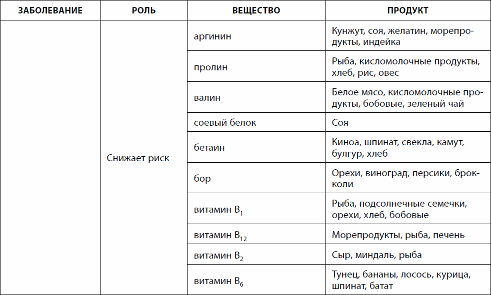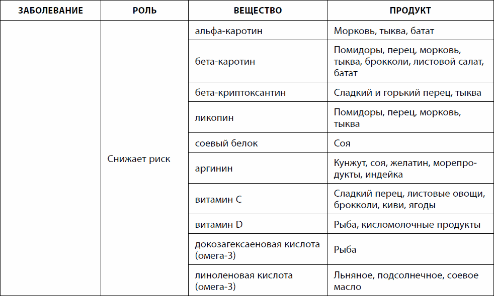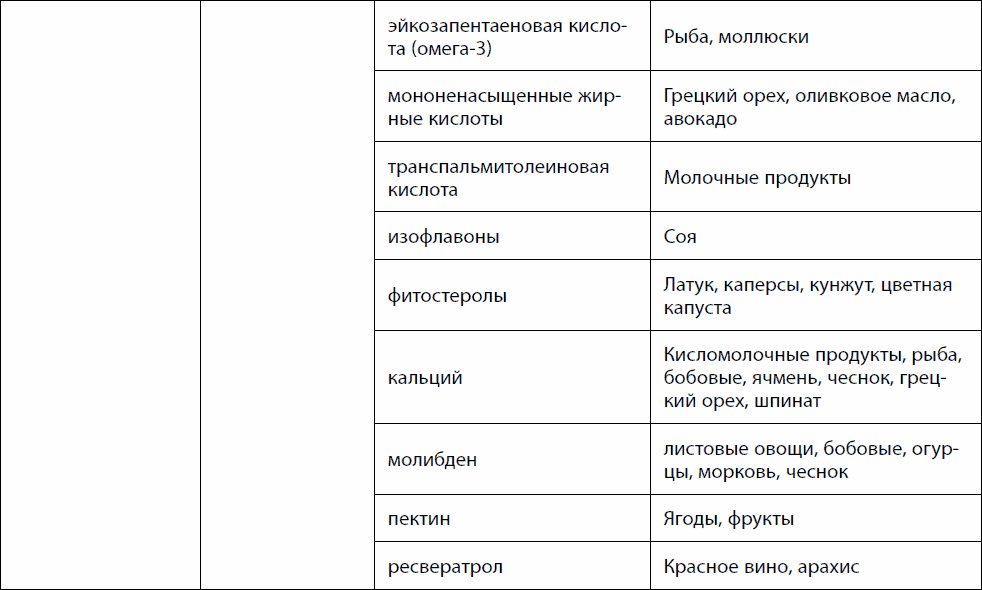 Таблица 6. Влияние питательных веществ на риск сердечно-сосудистых заболеваний