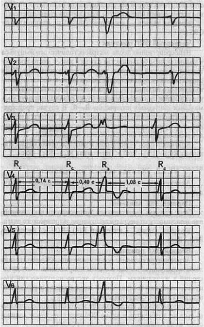Краткая запись — неполная компенсаторная пауза. Интервал R(с)—R(э)—R(с) < интервала R(с)—R(с)—R(с).